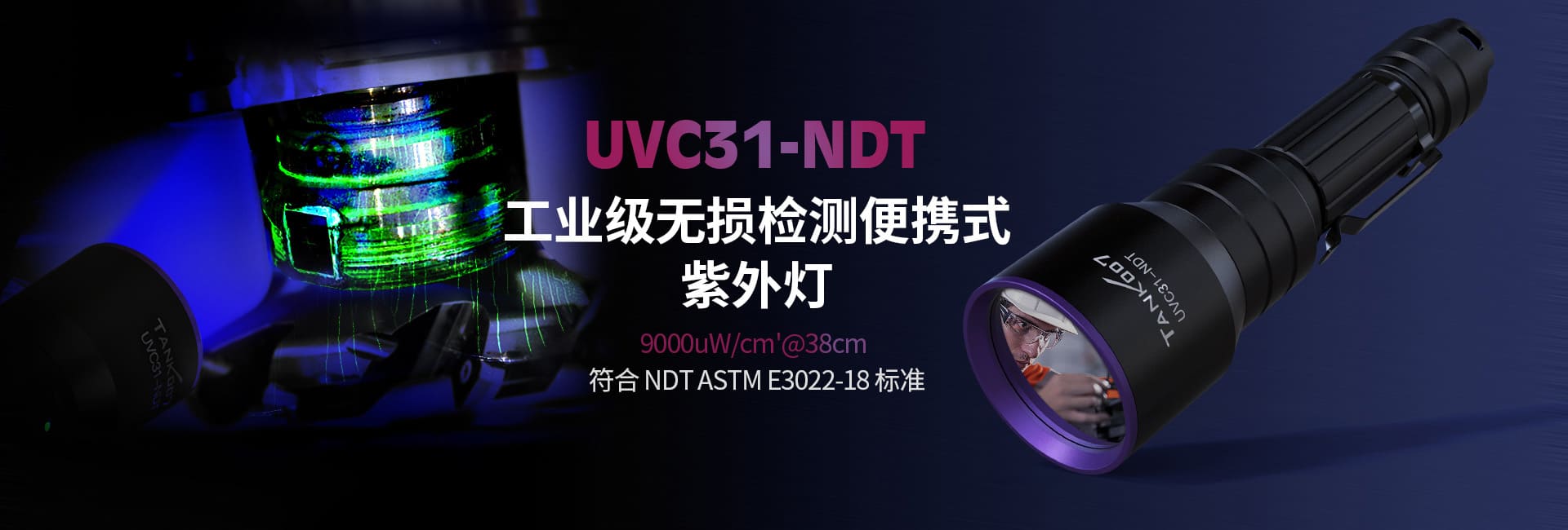 TANK007探客UVC31大功率手電筒適合NDT檢測、痕跡檢驗、工業探傷、檢漏等 ,也適用于執勤安防的驗痕、血跡,作案現場的查勘